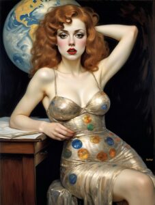 Art featuring the model: Gloria along with flowers, a dragonfly, the sea and a boat. The image is available on eBay Click Here! |