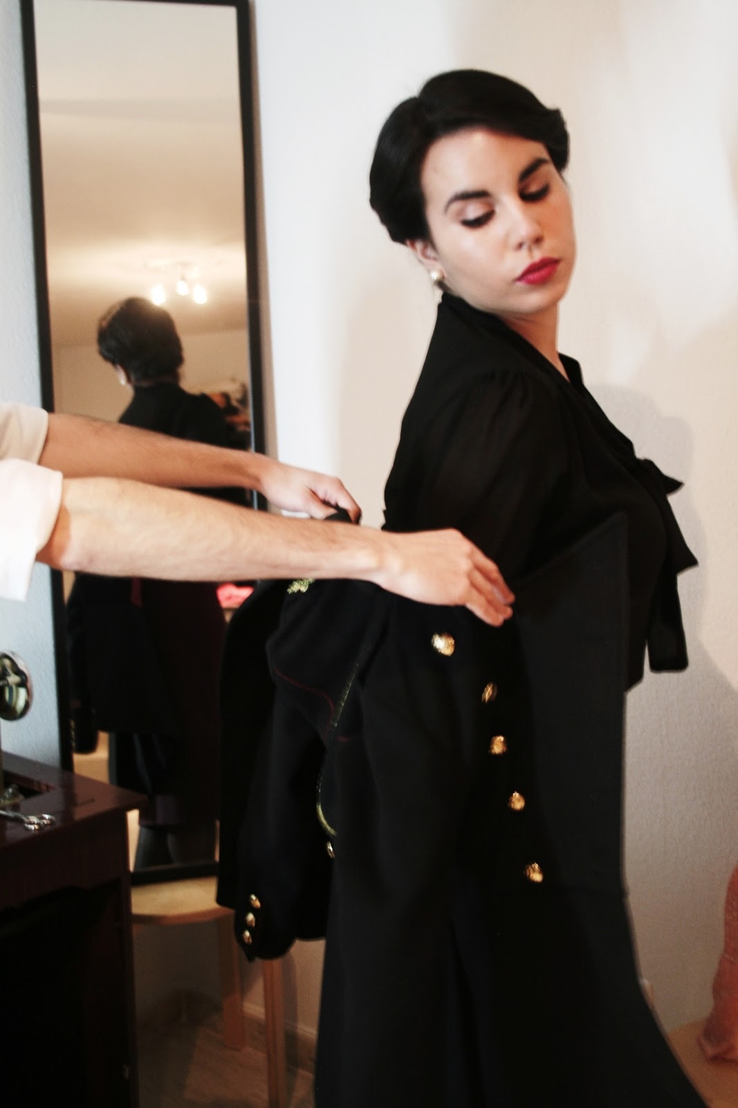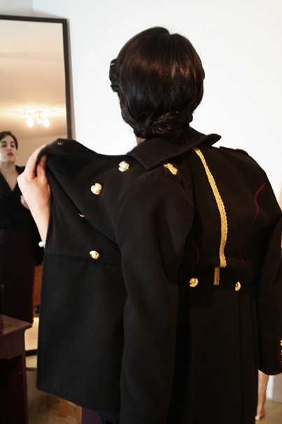 Una de las joyas de estos chicos son sus chaquetas de inspiración militar. Confeccionadas con mimo a partir de ilustraciones e imágenes de prendas originales de ejércitos de todo el mundo, dan la sensación de haber viajado en el tiempo para colarse en nuestros días. No pude resistirme, le pedí a los chicos que me dejaran probar alguna y… ¡lista para desfilar!