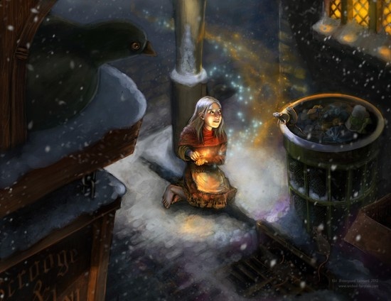 The Little Match Girl: Illustration based on Hans Christian Andersen’s fairy tale by the same name. Painted in Photoshop.