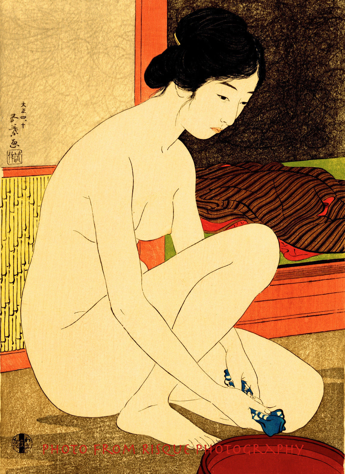 2) Japanese Nude Bather Print – Woman Washing Feet Pin-up……………………….