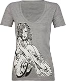 Fatal knit t-shirt. Tattooed woman printed at front. Fatal logo screened at high back. Short sleeve. Plunge v-neck. 100% cotton. Machine wash. Imported.