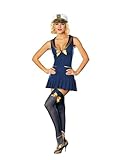 Features a three piece set that includes a knit sailor dress with embroidered back collar, captain’s hat and bow trimmed stockings. It’s sure to be smooth sailing for you in this sexy Sea Side Sailor Pin Up Costume. Our Sailor Costume features a three piece set that includes a navy blue knit sailor dress with an embroidered backcollar, a captain’s hat and bow trimmed navy blue thigh-high stockings.